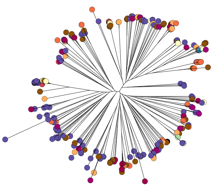 Back to the AMR study. We did a discriminant analysis of principle components (DAPC) to see whether the variation in the distribution of genetic determinants amongst the genomes could be used to discriminate between the clonal groups, and saw that AMR was not associated with individual clones: